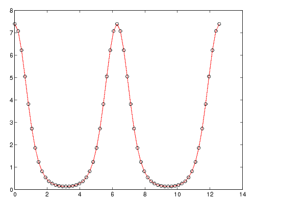 To plot both markers and the lines that connect them, specify a line style and a marker type. For example, the following command plots the data as a red, solid line and then adds circular markers with black edges at each data point.