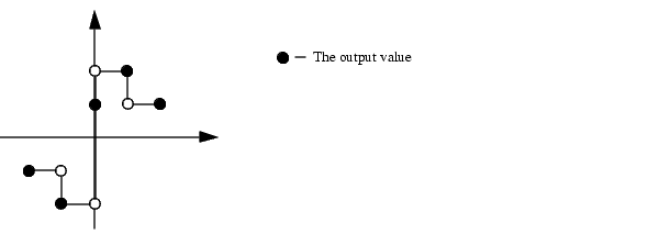 The Vector of input values parameter is converted from doubles to the input data type. The Vector of output values parameter is converted from doubles to the output data type. Both conversion are performed offline using round-to-nearest and saturation. Refer to Parameter Conversions for more information about parameter conversions.