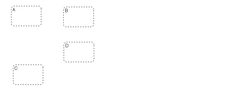 A and B are aligned at the same vertical level while states A and C and states B and D are aligned at the same horizontal position. Based on their top-down positions in the diagram editor, the order of execution for these states is A or B, then D and C. Because A is left of B, A is evaluated first and the order of entry is A, B, D, C.