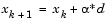denotes the current iterate, d is the search direction obtained by an appropriate method, and