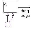 In the following example, state B is attached to state A by a smart transition. The example shows state B being dragged counterclockwise around the upper right corner of state A. When this occurs, state B turns to its selection color and the transition turns to a very light shade of gray, a sure sign of smart behavior. Dragging direction is shown by the arrows.