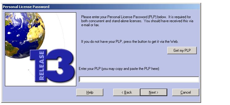 Enter your Personal License Password (PLP) in the Personal License Password dialog box and click Next. To avoid typing errors, copy the PLP from the license e-mail and paste it into this dialog box, using Ctrl+V. Take care to copy the entire PLP if your e-mail program has caused it to wrap onto two lines.