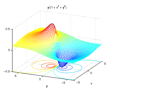 Use the mouse to rotate the axes to better observe the contour lines (this picture uses a view of azimuth = -65.5 and elevation = 26).