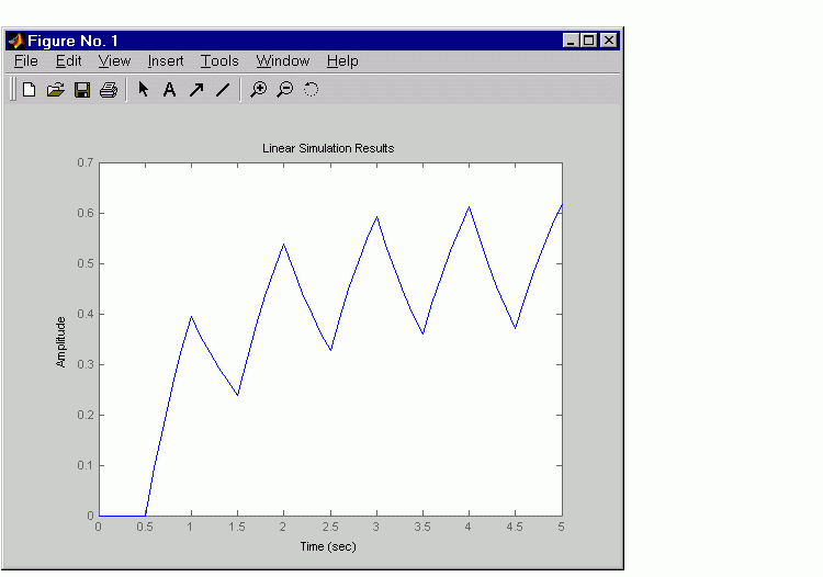 lsim simulates the (time) response of continuous or discrete linear systems to arbitrary inputs. When invoked without left-hand arguments, lsim plots the response on the screen.